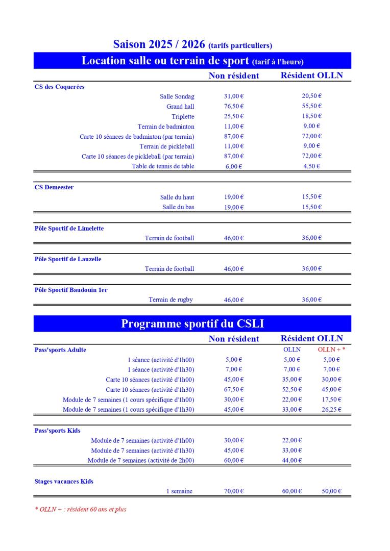 Bienvenue sur la page des tarifs de notre centre sportif.